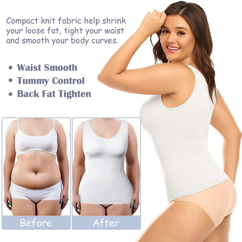 Plus Size Women Shaper Cami with Built in Bra Shapewear Tank Top Tummy Control Camisole Female Slimming Compression Undershirt